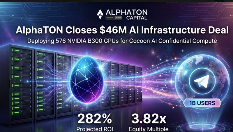 AlphaTON Capital Corp (NASDAQ: ATON), the world’s leading public technology company scaling the Telegram super app, with an addressable market of 1 billion monthly active users, today reports the signing and closing of a strategic $46 million AI compute infrastructure deal, adding 576 NVIDIA B300 chips, a half cluster, to its books. This deployment, scheduled for delivery next month in February, is projected to deliver a 27% IRR, 282% ROI, and a Net Present Value of $11 million, building on AlphaTON’s existing $20 million in assets on its balance sheet.
