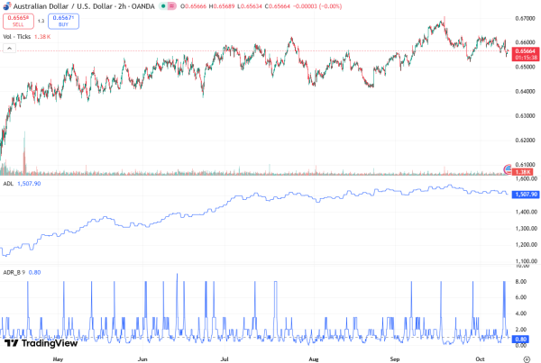 The Australian Dollar continues to gain against the US Dollar, underpinned by sticky services inflation, moderate economic data, and RBA commentary signaling a cautious approach. Meanwhile, the USD remains steady, influenced by mixed Fed signals and government shutdown uncertainties.