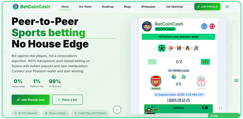 September 15, 2025 — BetCoinCash, a decentralized sports betting platform built on Solana, today announced the official launch of its ICO presale, starting at just $0.02 per BCC token. Early supporters can now participate in a continuous exponential pricing model, where every purchase increases the token price — rewarding those who join earliest.
