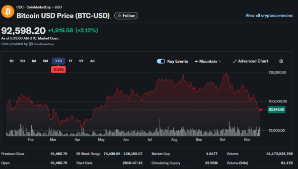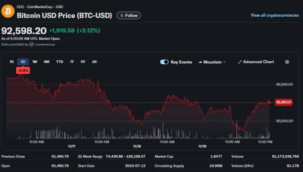 Trading activity shows Bitcoin hovering near $88,965, declining roughly 4.8% over 24 hours. Price swings ranged from approximately $88,800 to $93,500 intraday, highlighting persistent volatility following Tuesday’s liquidation cascade. From the all-time peak near $126,000 achieved in early October, the cryptocurrency has surrendered close to 30% of its value in a remarkably short timeframe.