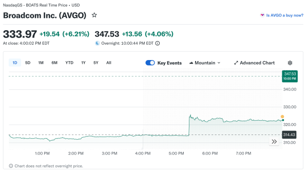 Broadcom’s 5% rally occurred while the S&P 500 spent most of the day down over 1% and the Nasdaq struggled in negative territory. Three factors explain the divergence.