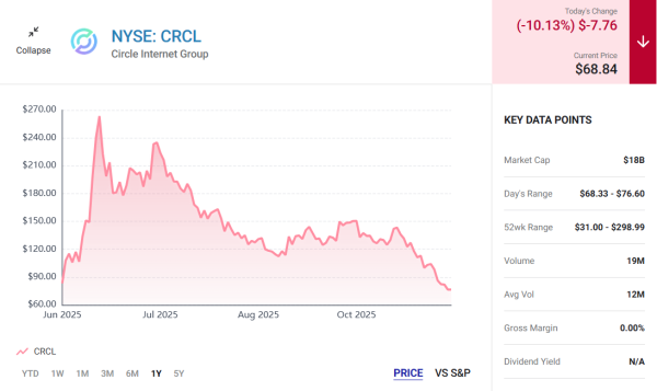 But Circle’s trading history has been turbulent. After going public in June at $31, the stock skyrocketed near $300 before cooling off sharply. Recent downturns in crypto markets have added further pressure.