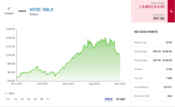 Another reason for the sell-off: valuation. Roblox was one of 2024’s standout tech winners, still up 76% year to date even after the pullback. When expectations are sky-high, even strong results can look underwhelming.