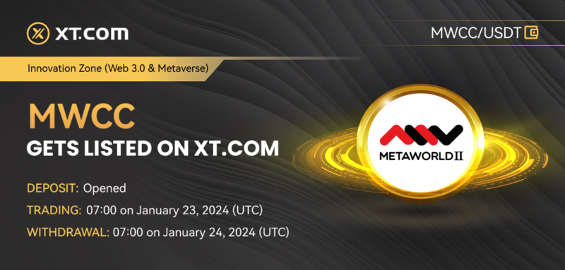 XT.COM, the world’s first socially infused trading platform, is thrilled to announce the listing of Metaworld (MWCC) on its platform in the Innovation Zone (Web 3.0 & Metaverse) and the MWCC/USDT trading pair started trading at 2024-01-23 07:00 (UTC).