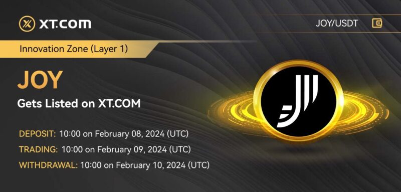 XT.COM, the world’s first socially infused trading platform, is thrilled to announce the listing of JOY on its platform in the Innovation zone (Layer 1) and the JOY/USDT trading pair started from 2024-02-09 10:00 (UTC).