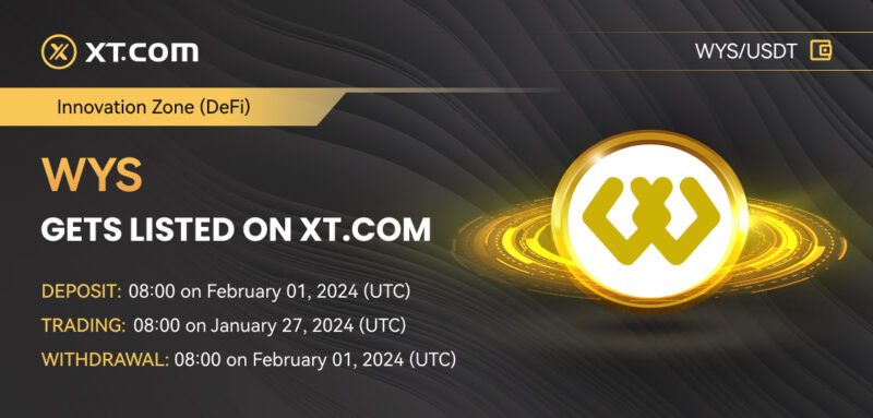 XT.COM, the world’s first socially infused trading platform, is thrilled to announce the listing of WYscale on its platform in the Innovation zone (DeFi) and the WYS/USDT trading pair started from 2024-01-27 08:00 (UTC).