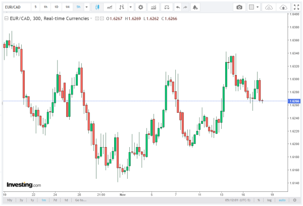 The EUR/CAD currency pair continues its losing streak, marking the third consecutive session of declines. After erasing earlier daily gains, the cross is trading near 1.6260 during European hours on Tuesday.