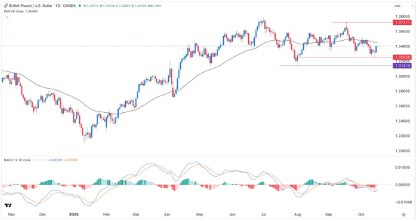 Aus technischer Sicht zeigt das tägliche GBP/USD-Diagramm ein klares bärisches Setup. Nach einem Tief von 1,3253 erholte sich das Währungspaar auf 1,3400, liegt jedoch weiterhin unter dem September-Hoch von 1,3721 und dem 50-Tage-Exponentiellen gleitenden Durchschnitt (EMA) bei 1,3428.