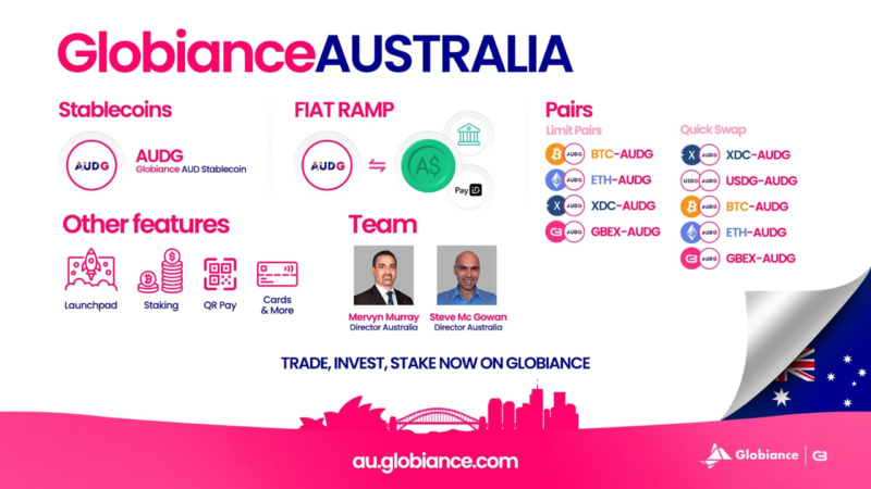 Globiance is thrilled to announce that Globiance Australia is now available to Australians. On August 3, 2023 Globiance CEO Oliver Marco La Rosa introduced the ‘first and only’ Stablecoin Available worldwide for the Australian Dollar (AUD) – Globiance Exclusive Australian Stablecoin – AUDG. The Globiance AUDG Stablecoin is pegged to the Australian Dollar at a 1:1 ratio at all times and available on the Globiance Platform. Globiance has also announced that Australians will now be able to use the extended features of the Platform such as on-ramping fiat, exchanging fiat & crypto, trading, banking services, and staking.