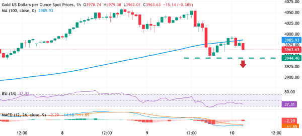 Despite showing a negative bias, Gold lacks significant follow-through selling, indicating cautious positioning among traders. The 100-hour Simple Moving Average (SMA) remains a key technical level, and the overnight swing low near $3,944 represents critical support.