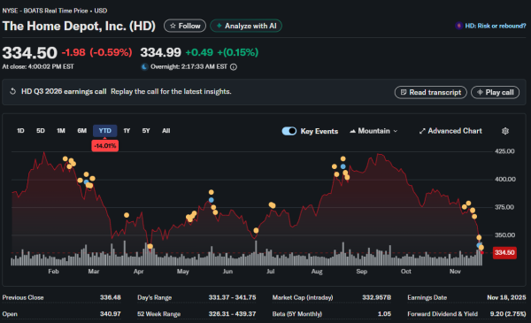 Home improvement retailers typically benefit from housing market activity and homeowner investment in property upgrades. Current dynamics show both new home sales and existing home transactions facing pressure from mortgage rates that remain elevated despite recent Federal Reserve rate cuts. Higher borrowing costs discourage home purchases and major renovation projects simultaneously.