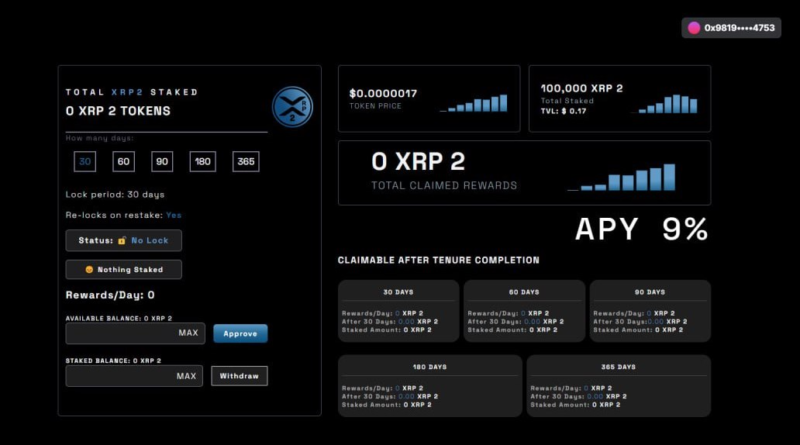 - Innovative Staking DApp: XRP 2’s staking dApp is now live and open to the entire crypto community. With 2 to 3 staking pools available every week, each for a 24-hour period, users can enjoy flexibility like never before. Stake, unstake, and claim rewards at any time, putting the power back into the hands of the users.