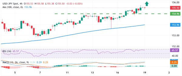 From a technical perspective, the USD/JPY pair has demonstrated back-to-back closes above the 155.00 psychological mark, indicating bullish momentum.