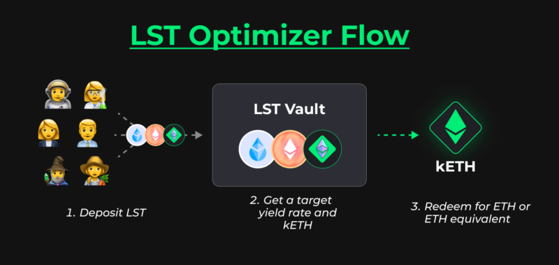 The LST Optimizer dApp is a remarkable platform that allows users to deposit LSTs. The LST Optimizer enables kETH holders to stake their kETH to earn BSN rewards on top of their kETH yield.