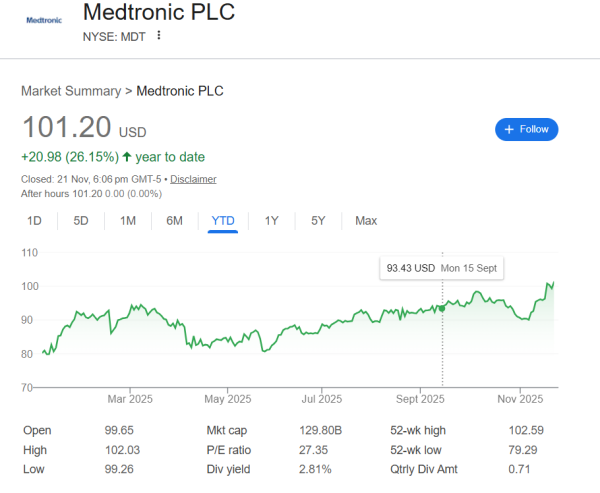 It also invested $1.9 billion in capital expenditures, strengthening manufacturing capabilities and operational infrastructure. Remarkably, these sizable investments did not strain its financial capacity. Instead, Medtronic preserved strong free cash flow, underscoring the durability and efficiency of its business model.