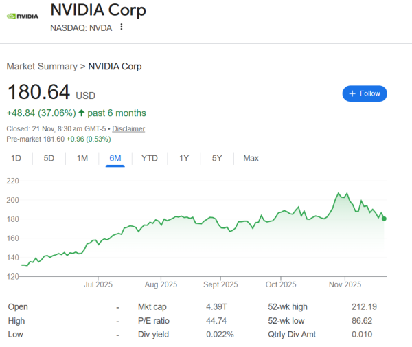Such a valuation is defendable when revenue rises more than 60% and margins remain exceptionally strong. However, it also means Nvidia has minimal room to disappoint. Any slowdown in demand, delay in next-generation product rollout, or broad market volatility could result in sharper-than-normal price swings.
