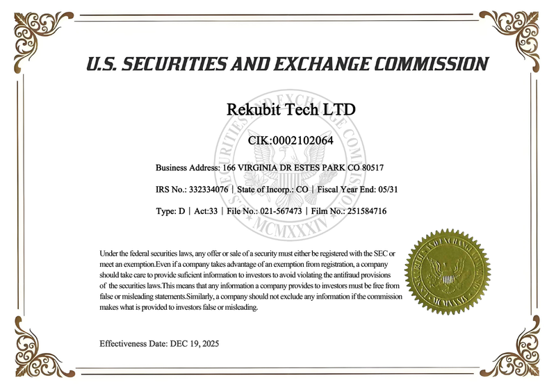 During the development process, Rekubit Exchange incorporated corporate disclosure and governance requirements aligned with applicable information and reporting frameworks of the U.S. Securities and Exchange Commission.