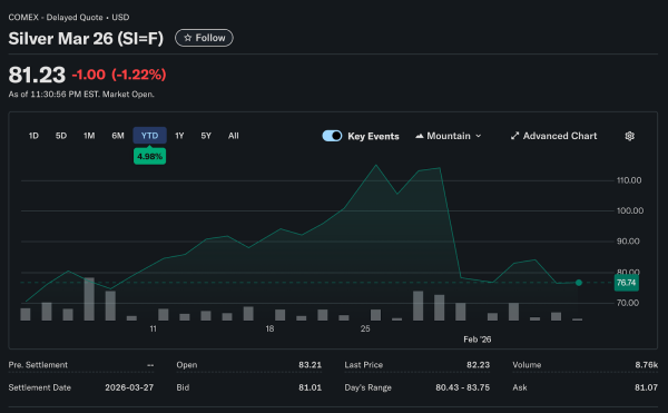 The move wasn’t a gradual deterioration over hours. It was a violent liquidation that overwhelmed every support level in what felt like minutes to traders watching screens. Spot silver that opened Friday near $111 per ounce closed around $80, erasing months of gains in one chaotic session that left participants stunned.