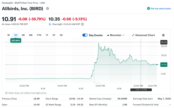 Allbirds rocketed 582% after announcing a pivot from a footwear business to an AI-focused model. The dramatic transformation represented a desperate attempt to capitalize on artificial intelligence hype. Investors embraced repositioning despite questions about the company’s technical capabilities in the new sector.