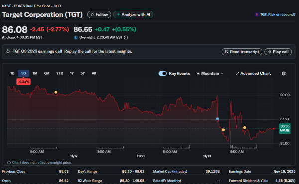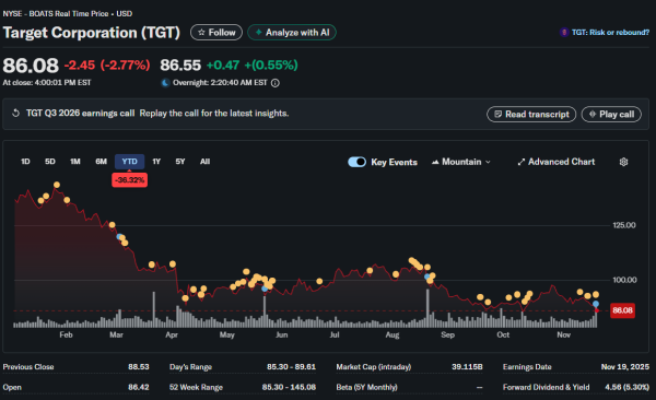 Target, the Minneapolis-based retailer, delivered results on Wednesday that confirmed investors’ worst fears about its competitive positioning and execution capabilities. Shares plummeted following an earnings announcement that revealed comparable sales declines, compressed margins, and a cautious outlook heading into the critical holiday shopping period.