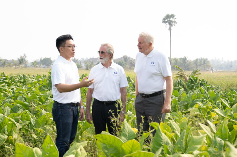 While inspecting the planting fields, David Mitchell and Vice President Dilhan Pillay inquired in detail about the irrigation of the trial area, pest outbreaks during the crop season and the construction of shade nets for tobacco varieties. They also made suggestions for improvements in the irrigation systems and shade net selections for 2024.