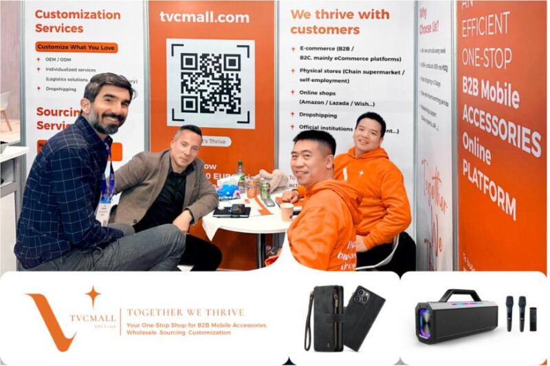 Recently, the 2023 Mobile World Congress (MWC) held in Barcelona turned out to be a big success. More than 88,000 attendees and 2400+ exhibitors participated in this event, including many cell phone accessories suppliers & wholesalers. As Europe’s leading one-stop shop for mobile accessories and wholesale/integrated supply chain service platform, TVCMALL participated in this digital/mobile feast. TVCMALL, based in Shenzhen China, the world’s electronic center, provides the esteemed customer B2B solution on mobile accessories especially for iPhone and Samsung for wholesale, sourcing, and customization. Variousclassic mobile cases with leather finishing, chargers with multifunction, and Amorus portable Karaoke speaker brought by TVCMALL were highly praised by our attendees.