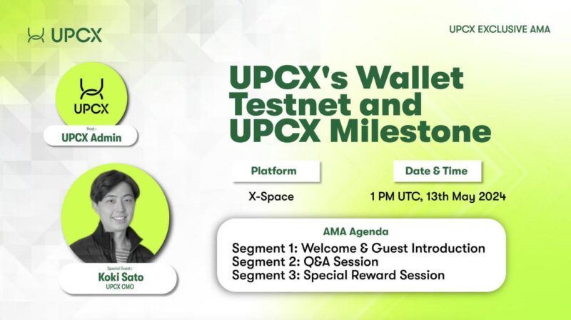 In today’s rapidly developing landscape of blockchain technology and digital currency payments, UPCX is at the forefront of optimizing payment systems and financial services. To maintain close ties with the community and transparently share upcoming product features and corporate milestones, UPCX will host an exclusive “Ask Me Anything” (AMA) live session on Twitter Spaces. This event, featuring UPCX’s Chief Marketing Officer Mr. Sato, will unveil the latest updates on the UPCX wallet testnet and other key developments to the global community.
