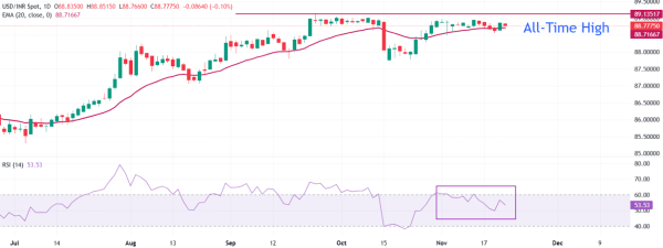 From a technical perspective, the USD/INR opened near 88.80 on Friday, with the 20-day Exponential Moving Average (EMA) at 88.70 providing a crucial support level for USD bulls.