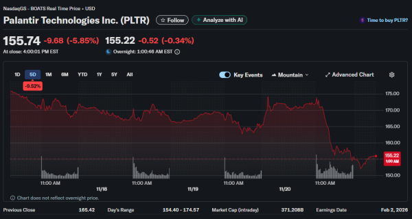 Technology sector leadership evaporated as investors questioned whether AI valuations adequately reflected execution risks and uncertain return timelines. Nvidia shares closed down 3.2% despite the strong earnings, dragging semiconductor peers lower. Palantir Technologies dropped 5.5% while Oracle fell nearly 5%, demonstrating that even AI-adjacent companies couldn’t escape the selling pressure regardless of individual fundamentals.