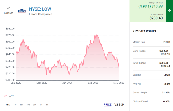 Analysts had forecasted that Lowe’s would report $2.95 per share in Q3 on sales of $20.84 billion, setting a moderate expectation for the home improvement retailer. The company exceeded earnings estimates, posting $3.06 per share, demonstrating resilience despite a slightly lower-than-expected $20.81 billion in sales.